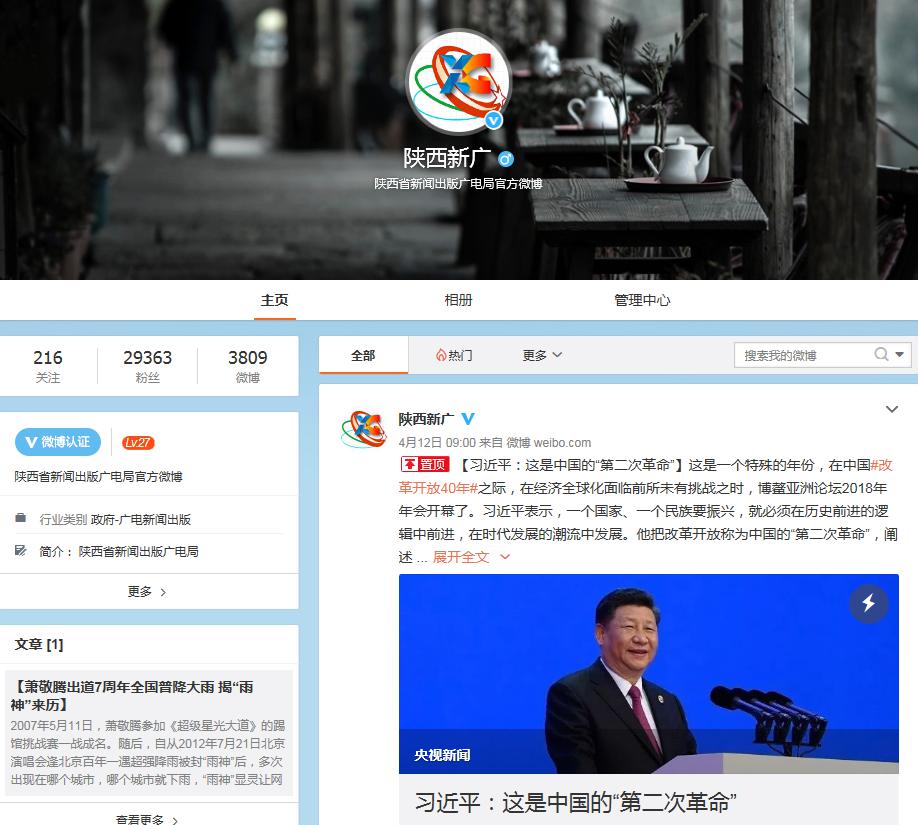 在主动公开信息中,除了以门户网站形式公开外,我们还加强与新闻媒体沟通,充分发挥新闻媒体平台作用。2107年我局官方微博“陕西新广”共布发信息530条,现有粉丝29300余人。